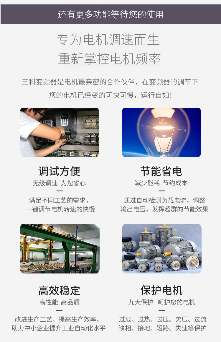 三科變頻器可廣泛應用在風機、水泵、環(huán)保,空壓機、注塑機、卷繞機、中央空調,紡織機、化工、冶金、礦業(yè)、制藥、陶瓷、造紙、油田、塑料、印刷、熱電、煙草、食品等各類機械設備中。