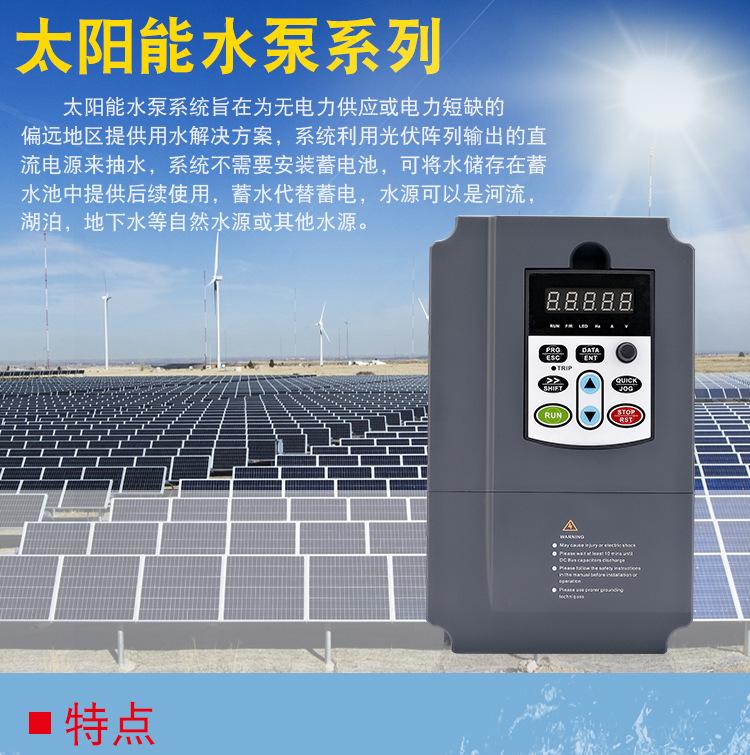 SK650系列變頻器是三科推出的針對光伏發(fā)電,驅(qū)動三相交流水泵的變頻器,它采用大功率點追蹤及久經(jīng)考驗的電機驅(qū)動技術(shù)以催化增大太陽能模塊的輸出功率,它將直流電直接逆變成三相交流電,可驅(qū)動各類交流水泵。同時它支持直流和交流輸入,當(dāng)沒有太陽能時,該變頻器手動切換到單項或三相交流電輸入,如市電發(fā)電機或電池。SK650光伏水泵變頻器提供全方位保護(hù),電機軟啟動及調(diào)速功能,即開即用,安裝方便。產(chǎn)品型號 | SKI650A045G-055G-4 | SKI650A055G-075G-4 |