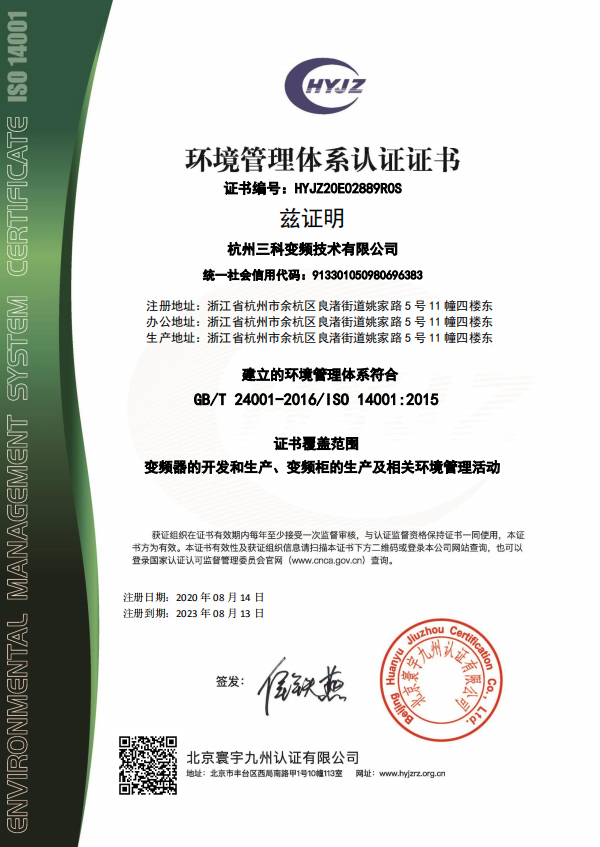環(huán)境管理體系認(rèn)證證書(shū)
