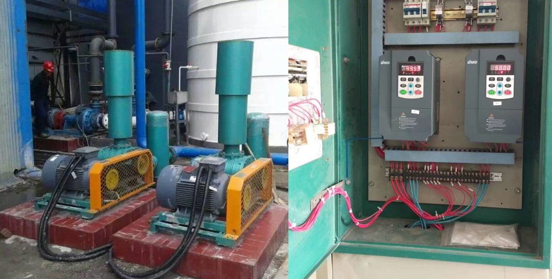 5.降低變頻控制柜噪音:根據(jù)電機的工作情況,安裝變頻控制器后,電機運行速度明顯減慢,有效降低了電機運行時的噪音。