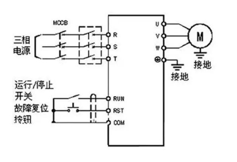 變頻器只要根據(jù)RUN接線端子給予上拉電阻,變頻器就可以啟動,開關(guān)斷裂時,與RUN接線端子變成低頻相同,變頻器停止運轉(zhuǎn)。