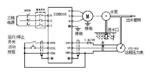 這類狀況應(yīng)用一個自我保護(hù)按鍵開關(guān)就可以考慮變頻器的起??刂?,多出去的一個開關(guān),能夠用于做常見故障校準(zhǔn),收到RST上,自然是用非維持的開關(guān)更理想化,當(dāng)變頻器有常見故障的情況下,按一下校準(zhǔn)開關(guān),就可以清晰變頻器的常見故障了。由于沒有獨立的電阻器給定,此刻能夠根據(jù)實際操作控制面板來給定頻率。