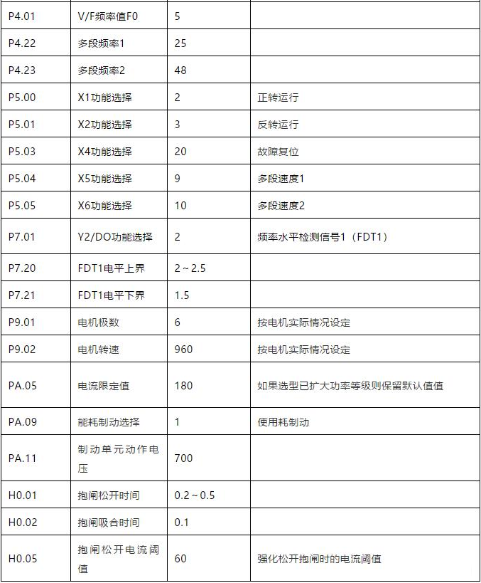 另外,上面的表格中所列舉的參數并不一定完全適合所有的現場調試,僅供調試參考。
