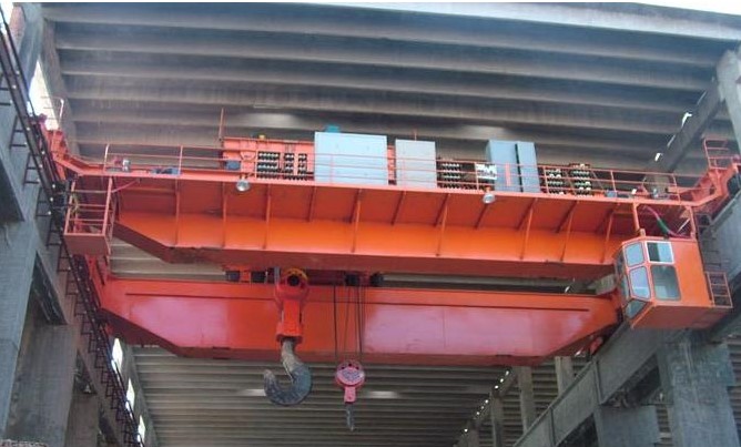 橋式起重機(jī)我們通常將其簡稱為行車或天車,這是一種將橋架在高架軌道上運行的橋架型起重機(jī)。其運行的原理是通過橋架沿鋪設(shè)在兩側(cè)高架上,然后以軌道縱向運行的方式工作,而當(dāng)起重小車沿鋪設(shè)在橋架上的軌道橫向運行時,則構(gòu)成一個矩形的工作范圍,這樣就可以充分利用的橋架下方空間來吊運物料,可以有效避免地面設(shè)備造成阻礙和干擾。目前橋式起重機(jī)已廣泛的應(yīng)用在室內(nèi)外的倉庫、廠房、碼頭和露天貯料場等處中。橋式起重機(jī)通常是由起重小車、橋架運行機(jī)構(gòu)、橋架金屬結(jié)構(gòu)組成。其中起重小車部分又由起升機(jī)構(gòu)、小車運行機(jī)構(gòu)和小車架三部分組成。