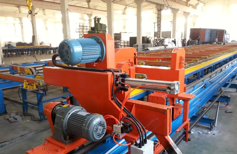 某地一家專業(yè)從事鋁型材加工生產(chǎn)的企業(yè),其生產(chǎn)車(chē)間內(nèi)的牽引系統(tǒng)主要是由觸摸屏、PLC與杭州三科的SKI600系列重載變頻器組成。牽引機(jī)作為鋁型材生產(chǎn)中的一種重要設(shè)備,在生產(chǎn)中需要配合擠壓機(jī)的擠出速度將鋁材原料從擠壓機(jī)模具腔中平直地牽引出來(lái)。牽引系統(tǒng)采用恒張力控制,以保證型材的直線度,防止型材扭曲,并減少型材表面的損傷,提高型材的成材率和品質(zhì)。