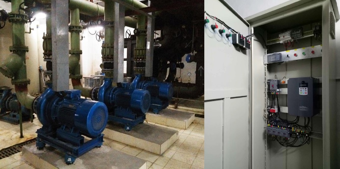 采用水泵變頻控制柜(電路中添加變頻器)-----即電機(jī)緩慢加轉(zhuǎn)速,即可克服上述情況的發(fā)生,這種專門控制電機(jī)緩慢和轉(zhuǎn)速的變頻器就是水泵專用變頻器。