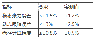驗證卷徑計算準(zhǔn)確性(誤差<±1%)