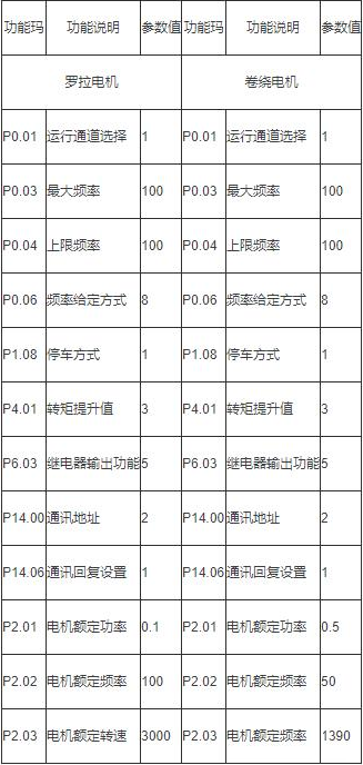 本文僅以杭州三科生產(chǎn)的SKI600通用重載變頻器(VFD)在某地企業(yè)中的化纖分絲機(jī)的現(xiàn)場(chǎng)調(diào)試項(xiàng)目?jī)?nèi)容為主體,為大家闡述變頻技術(shù)在化纖分絲機(jī)中的應(yīng)用方案,如上所示。客戶希望通過(guò)使用兩臺(tái)SKI600(0.75KW),一臺(tái)控制超喂羅拉電機(jī),一臺(tái)控制收卷電機(jī),另外每5臺(tái)設(shè)備需要一個(gè)SKI600(0.75)控制頂輪電機(jī),步進(jìn)控制器控制移絲成型,每圈單脈沖霍爾元件用來(lái)測(cè)速,要求主要包括: