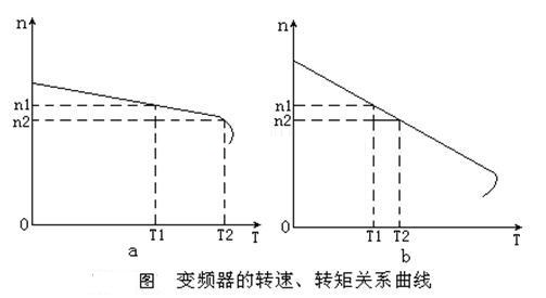 上圖中的圖(a)是電動機處于自然特性時的轉速、轉矩關系曲線,而圖(b)則是電動機具有下垂特性時的轉速、轉矩關系曲線。由圖可見: