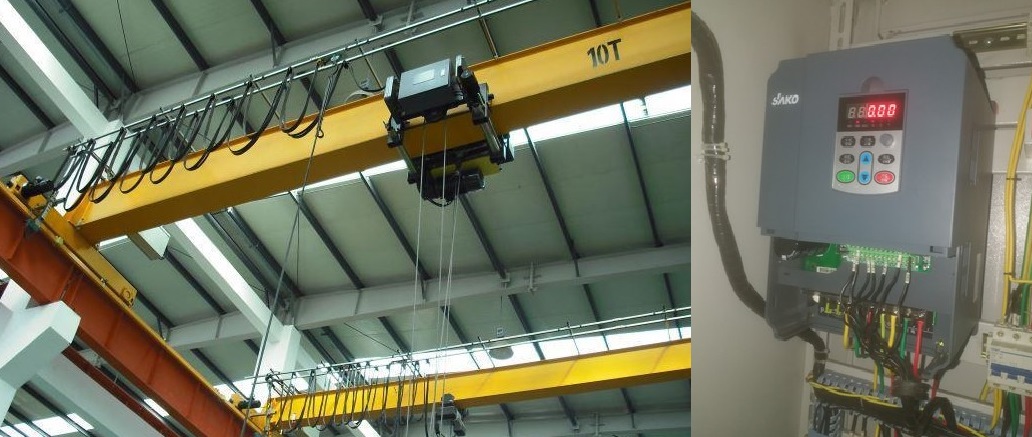 當我們需要的對兩臺或兩臺以上生產(chǎn)機械的電機進行同時拖動時,這里我們以橋式起重機為例,該設備是由安裝在兩側相同功率的電機進行同時拖動。這里的兩臺電機是通過同一臺起重機變頻器進行供能與控制的,協(xié)調(diào)兩臺電機進行升降調(diào)速的功能。這種情況不但要求兩臺電機的轉速同步,而且要求它們的負荷分配盡量均衡。而杭州三科生產(chǎn)SKI600系列產(chǎn)品所具備的下垂功能,可以很好地滿足起重設備這種應用需求。