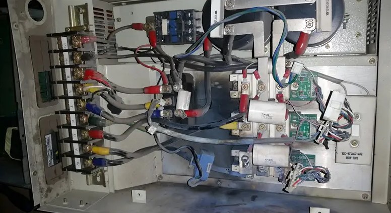 驅(qū)動器損壞有多種原因。一般來說,問題不外乎U、V、W三相輸出,或者輸出不平衡,或者輸出平衡但低頻抖動,開機報警等等。當(dāng)一個VFD大電容熔斷,或者IGBT逆變模塊損壞時,驅(qū)動電路基本不可能完好,所以切不可更換好的保險絲或IGBT逆變模塊,這樣容易造成新更換的好器件再次損壞。這時要重點檢查下驅(qū)動電路上是否有火花痕。這里可以先拔下IGBT逆變模塊的驅(qū)動引腳,用萬用表測量六個驅(qū)動電路的電阻值是否相同。如果六個驅(qū)動電路的電阻值基本相同,并不能完全證明驅(qū)動電路狀態(tài)良好。然后,我們需要用電子示波器測量六個驅(qū)動電路上的電壓是否相同。給定啟動信號時,六個驅(qū)動電路的波形是否一致?如果你手里沒有電子示波器,也可以嘗試用數(shù)字電子萬用表測量六個驅(qū)動電路的DC電壓。一般來說,每個驅(qū)動電路未啟動時的DC電壓約為10V,啟動后的DC電壓約為2-3V。如果測量結(jié)果正常,基本可以判斷這個VFD的驅(qū)動電路是好的。然后將IGBT逆變模塊接在驅(qū)動電路上,但要記住,如果你沒有100%的把握,※安全的辦法是將IGBT逆變模塊的P從DC母線上斷開,間接連接一組串聯(lián)的燈泡或者一個功率更大的電阻,這樣可以保護(hù)IGBT逆變模塊在電路有大電流時不被大電容的放電電流燒壞。