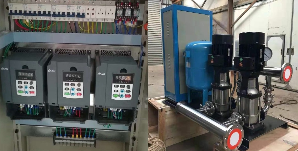 在SKI600水泵變頻器輸出頻率低于其休眠閾值的最低工作頻率(下界)時(shí),停止工作,并在水壓降至一定范圍后,自動(dòng)重新啟動(dòng)電機(jī)運(yùn)行。