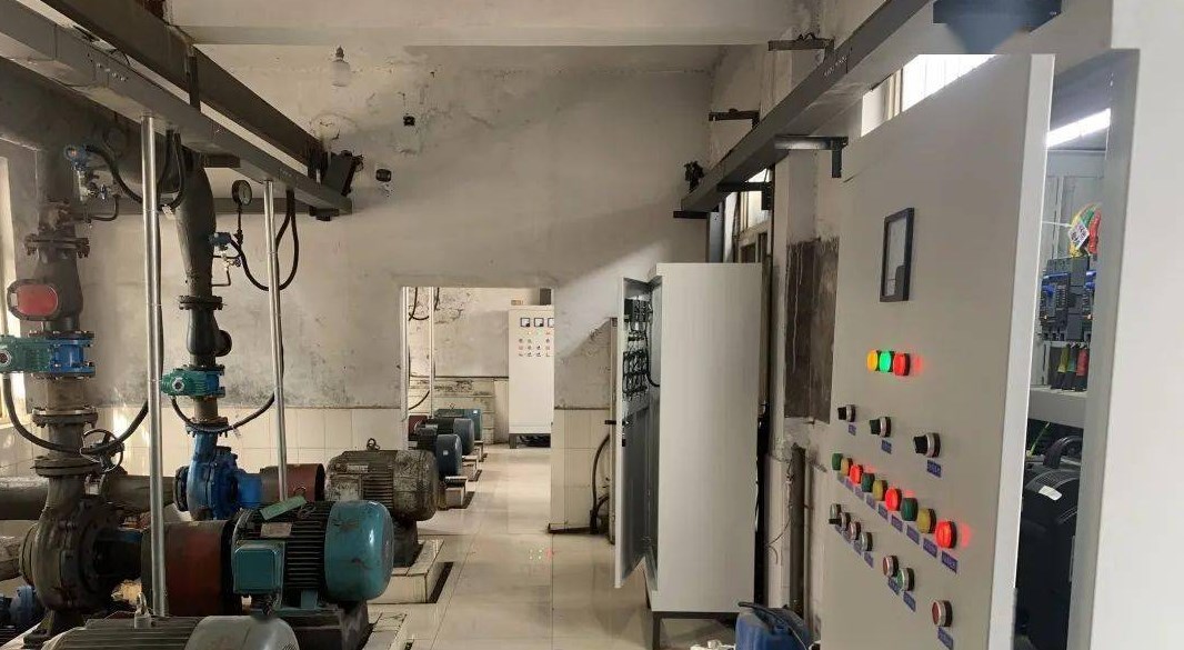 某地電廠的綜合泵房共有9臺(tái)水泵,其中有3臺(tái)工業(yè)水泵,2臺(tái)消防穩(wěn)壓泵,2臺(tái)消防泵,2臺(tái)生活水泵。而工業(yè)水泵承擔(dān)著我公司兩臺(tái)5萬(wàn)KW汽機(jī),兩臺(tái)額定蒸發(fā)量220T/H鍋爐生產(chǎn)用水的供水任務(wù),工業(yè)水泵的型號(hào):250SSK468/54,流量:468m3/h,揚(yáng)程54米,轉(zhuǎn)速1470 r/min,配用功率110KW;配用電機(jī)型號(hào)Y315S-4B3,電壓380V,電流201A,轉(zhuǎn)速1480 r/min.建廠初期由于設(shè)計(jì)問(wèn)題,全部采用工頻運(yùn)行。為了保證生產(chǎn)的可靠性,各種水泵在設(shè)計(jì)配用動(dòng)力驅(qū)動(dòng)時(shí),都留有一定的富余量。電機(jī)不能在滿負(fù)荷下運(yùn)行,除達(dá)到動(dòng)力驅(qū)動(dòng)要求外,多余的力矩增加了有功功率的消耗,造成電能的浪費(fèi),