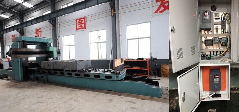 針對(duì)龍門刨床主傳動(dòng)系統(tǒng)的結(jié)構(gòu)及控制特點(diǎn),采用PLC和變頻技術(shù)對(duì)傳統(tǒng)的龍門刨床控制系統(tǒng)進(jìn)行改造。工作臺(tái)的主運(yùn)動(dòng)及進(jìn)刀機(jī)構(gòu)分別采用變頻器進(jìn)行控制,制動(dòng)系統(tǒng)采用能量回饋裝置,全部工藝過(guò)程及相關(guān)信號(hào)由PLC進(jìn)行控制,與原系統(tǒng)相比較,改造后使用我司ES100系列變頻器調(diào)速系統(tǒng)主傳動(dòng)裝置容量節(jié)省,傳動(dòng)效率提高了一倍,調(diào)速范圍增大到1:35,靜差度3%,同時(shí)還大大簡(jiǎn)化了拖動(dòng)控制系統(tǒng),減小了維護(hù)工作量,經(jīng)濟(jì)性和可靠性都有了很大的提高。