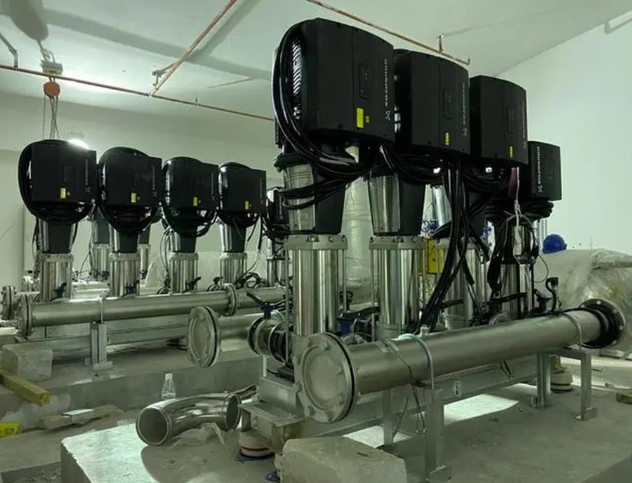 變頻恒壓供水系統(tǒng)以管網(wǎng)水壓或用戶用水流量為設(shè)定參數(shù),經(jīng)過(guò)微機(jī)控制變頻器的輸出頻率從而自動(dòng)調(diào)理水泵電機(jī)的轉(zhuǎn)速,完成管網(wǎng)水壓的閉環(huán)調(diào)理,使供水系統(tǒng)自動(dòng)恒穩(wěn)于設(shè)定的壓力值:即用水量增加時(shí),頻率升高,水泵轉(zhuǎn)速加快,供水量相應(yīng)增大;用水量減少時(shí),頻率降低,水泵轉(zhuǎn)速減慢,供水量亦相應(yīng)減小,這樣就保證了供水效率用戶對(duì)水壓和水量的請(qǐng)求,同時(shí)到達(dá)了進(jìn)步供水質(zhì)量和供水效率的目的,“用幾水,供幾水”;采用該設(shè)備不需建造高位水箱,水塔,水質(zhì)無(wú)二次污染,是一種理想的現(xiàn)代化建筑供水設(shè)備。