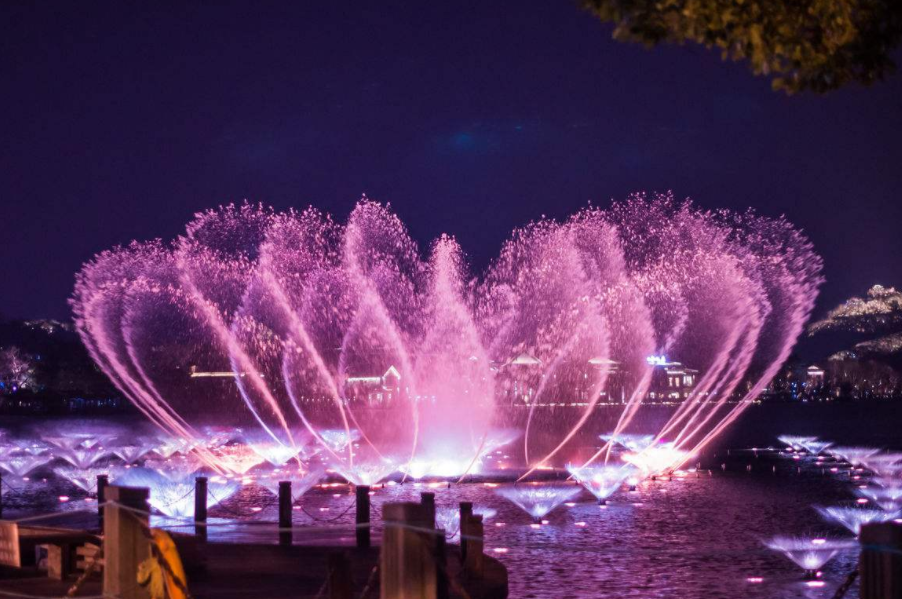 非常招攬游人的音樂(lè)噴泉,其水的高低和量的大小是靠變頻器矢量控制的。