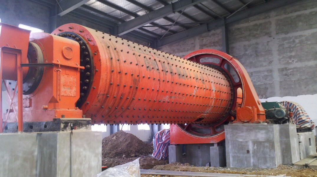 球磨機主要由傳動裝置、筒體裝置、給料裝置、卸料裝置及電氣控制裝置等組成。設備運行時由電氣控制裝置驅動電動機,然后再通過減速機及周邊大此輪的減速傳動,拖動筒體裝置回轉。筒體裝置內(nèi)部裝有的物料和研磨體在回轉時產(chǎn)生的離心力和摩擦力的作用下,被提升至一定高度后沿近似拋物線的軌跡落下來沖擊和研磨筒體底部的另一部分物料,并產(chǎn)生一定的軸向運行促使物料研磨和混合均勻。研磨完成的物料最后通過卸料裝置排除筒體,以進行下一段工序處理。研磨工藝如下圖1所示。