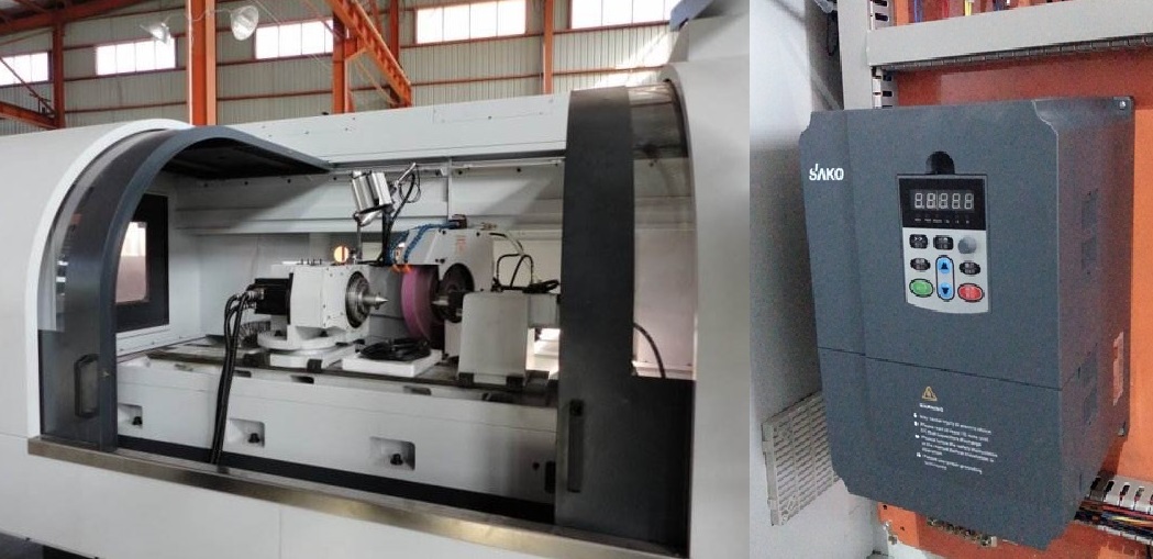 根據(jù)不同的軸桿類直徑的大小,主砂輪電機(jī)的轉(zhuǎn)速等于砂輪輸出的轉(zhuǎn)速。磨削力的大小取決于砂輪電機(jī)的輸出轉(zhuǎn)矩。在驅(qū)動(dòng)工件旋轉(zhuǎn)的主軸電機(jī)的高速段,相對于砂輪輸出轉(zhuǎn)速不變,所加工的工件直徑小,磨削進(jìn)給少;加工大直徑,長軸類工件時(shí),工件旋轉(zhuǎn)的電機(jī)在低速段,砂輪進(jìn)給量大,砂輪磨削力也在變大,電機(jī)很難在恒轉(zhuǎn)矩/恒速度下運(yùn)行。速度的變化就產(chǎn)生了如振刀紋/燒糊紋/加工精度等的變化。變頻調(diào)速電機(jī)的無級調(diào)速,恒轉(zhuǎn)矩輸出恰能彌補(bǔ)上述缺陷。