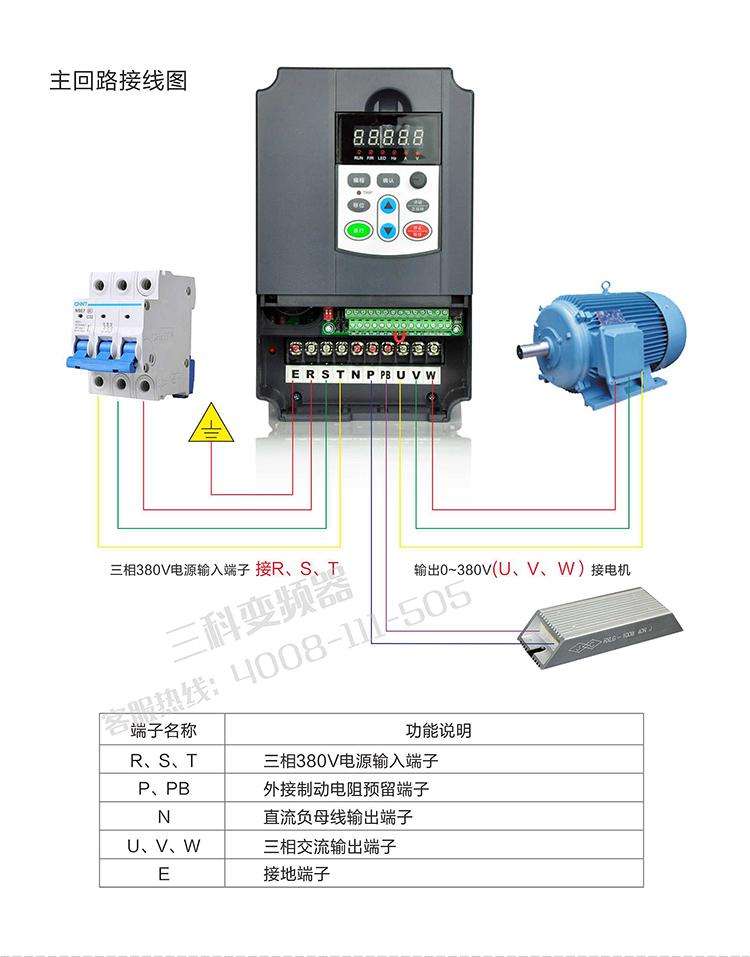 3、 變頻器輸出側(cè)不允許接(電容器),也不允許接電容式單相電動(dòng)機(jī)。