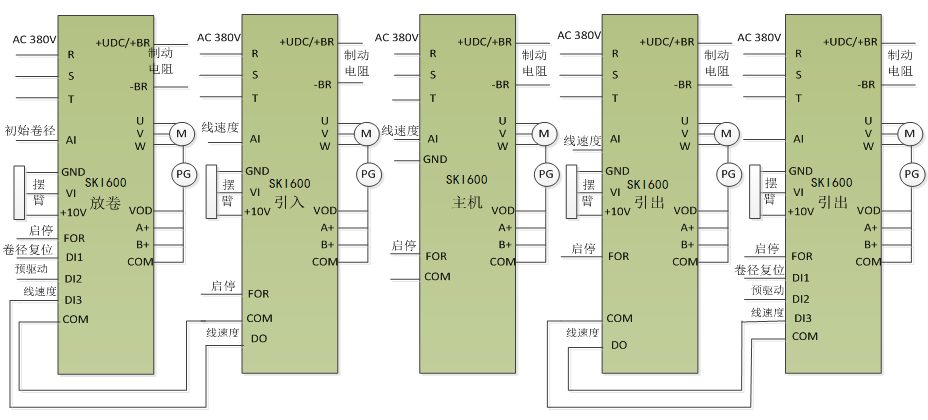 PLC只完成不同版輥同步頻率的簡(jiǎn)單匹配(主速處理),邏輯控制,大量張力控制和操作由變頻器自動(dòng)完成;安裝調(diào)試簡(jiǎn)單易行;